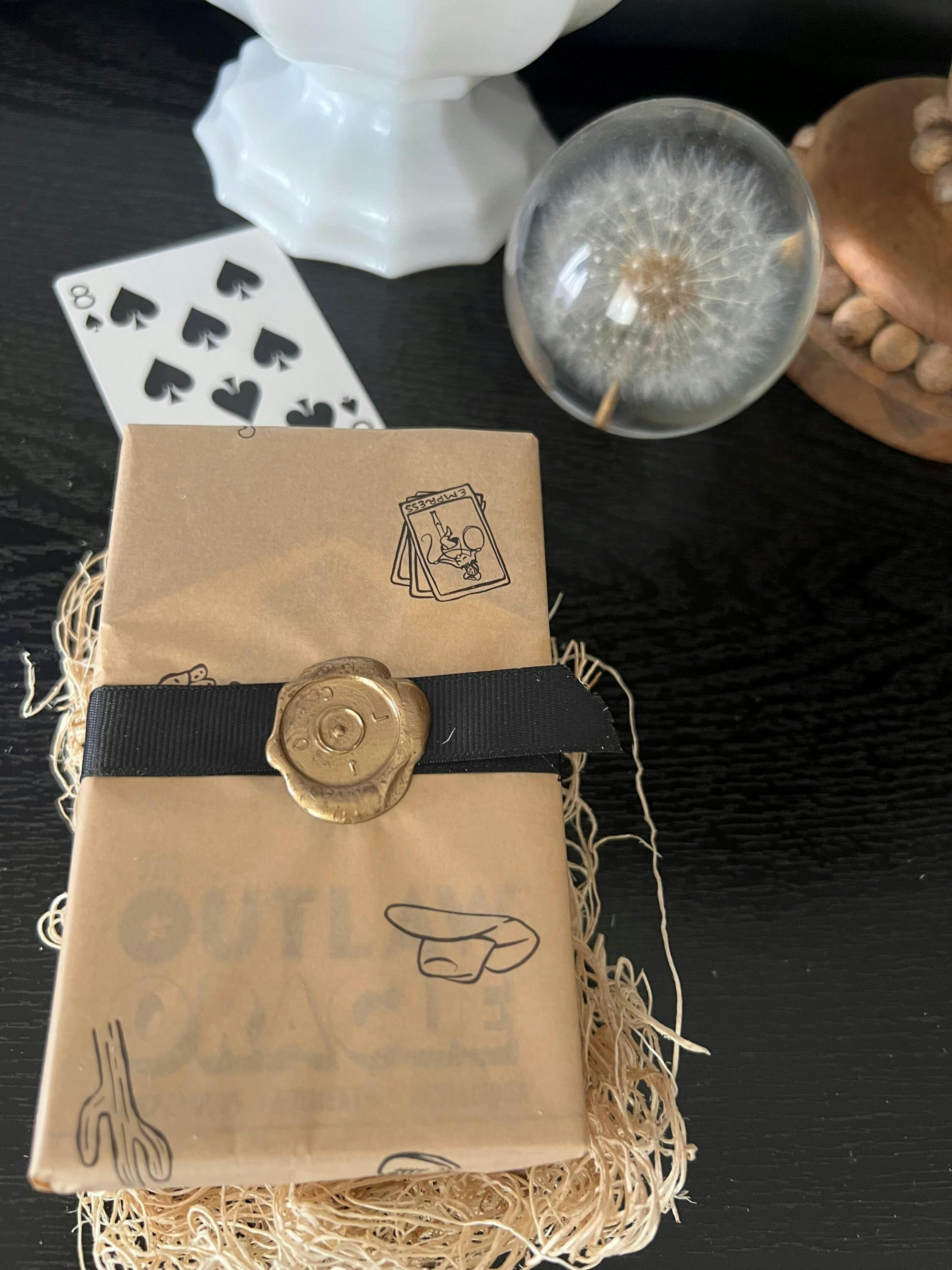 44-card Outlaw Oracle Deck featuring country western artwork with companion guidebook which has recommended songs and messages for every card - including both upright and reversed meanings.  44-card Outlaw Oracle Deck featuring country western artwork with companion guidebook which has recommended songs and messages for every card - including both upright and reversed meanings.